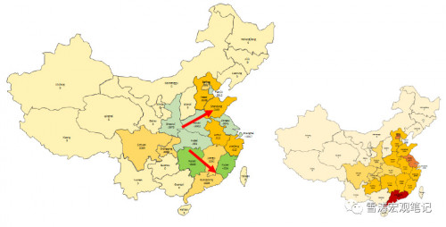 过去一百年,中国历史上发生过两次规模宏大的产业迁移。第一次是抗日战争时期,为了避免民族工业毁于战火,沿海和沿江下游的工厂企业集体内迁。第二次是1964年到70年代末的三线建设,当时出于战备需要将国防科工企业迁往西北西南地区。之后的改革开放解放了生产要素的自由流动,也打破了商品市场的地理分割,在区域地理特征的支配下,中国区域经济发展整体表现出“东强西弱,南升北降”的特点。最近几年随着产业转型升级的加快,中国经济结构的调整不仅体现在产业资本开支的新旧分化上,也体现在产业链的重新布局和大迁移上。