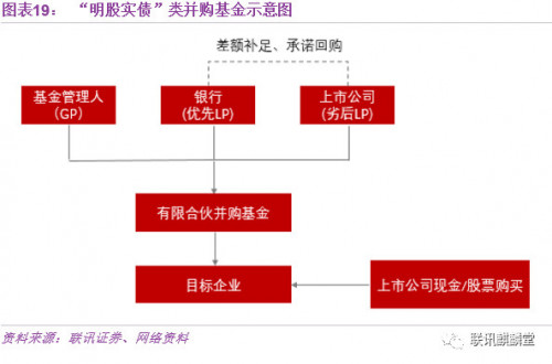 实践中的并购基金多为有限合伙制形式,“明股实债”是主流模式。在这种模式中,银行担任优先级LP,上市公司或大股东担任劣后级LP,对优先级LP提供回购承诺、差额补足等增信措施。具体可分三步: