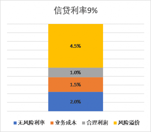 信贷利率 = 无风险利率 + 业务成本 + 合理利润 + 风险溢价