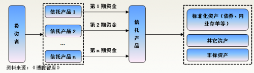 这种模式下,银行代销不同期次、滚动发行的信托产品,并负责这些信托产品的统一管理,信托公司在这里仅起到提供资金归集和发放产品的作用,是一个事务管理型信托,但存在责任划分不清的问题。