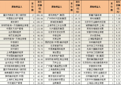 1、重庆蚂蚁小微小贷和深圳前海一方商业保理分别发行了17只和23只交易所ABS产品,遥遥领先