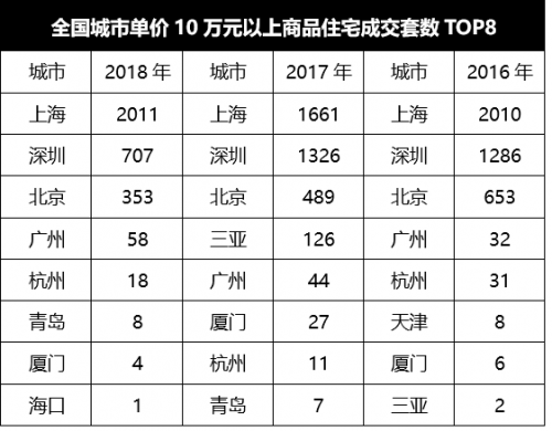 另外值得一说的是,三亚这个旅游城市在前两年赫然上榜,显示三亚房产的极高估值,其房价的天花板很高。不过,2018年是海南严控房地产的一年,三亚就没有出现在TOP10了。