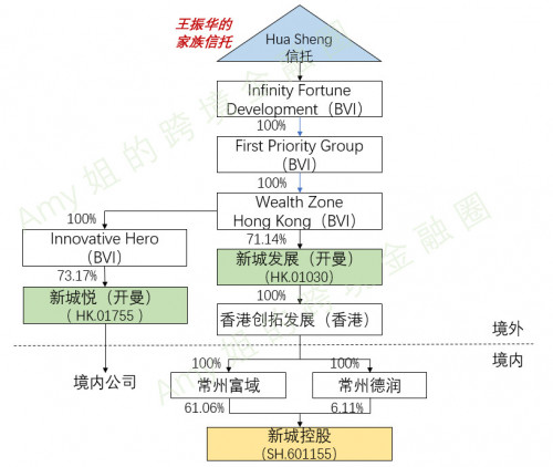 2010年至2011年间,在筹划新城发展(HK.01030)上市的过程中,王振华就设立了Infinity Fortune作为顶层控股公司,同时也设立了家族信托,并将个人所持的顶层公司的全部股份装入其中。