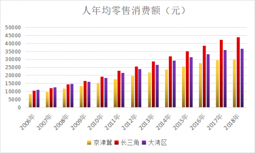 但从消费潜力来说,长三角并没有多么突出,只是略微高于大湾区,而作为北方经济中心的京津冀地区,其增速不仅弱于其他两地,甚至不及全国整体水平,真的也是没什么可说的了。