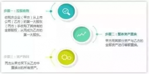 净壳收购模式的关键在于第二个步骤,即整体资产置换交易。