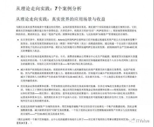 报告突出展示那些将探索或赋能这一进程的私有和上市企业——并分析区块链可以创造哪些新的利润池,或是破坏哪些旧的利润池。值得注意的是,在这些应用中,区块链不仅仅在于去中间商化。