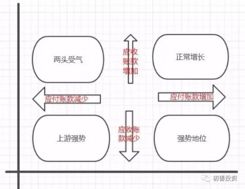 (2)如果是在应付账款增加,应收账款减少的第四象限上,企业对上下游议价能力都很强。地位强势。