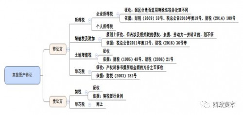3.与上文提及的资产划转不同的是,在直接资产转让过程中,对于转让方需征收土地增值税;除房地产开发企业外,在资产划转中,原则上不征收土地增值税。另外,财税[2015]37号明确规定“同一投资主体内部所属企业之间土地、房屋权属的划转”免征契税(但政策的执行期限已过,后续如何处理待政策继续明确)。